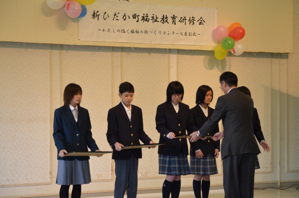 | 続いて『第25回わたしの描く福祉の街づくりコンクール』表彰式が行われ、昨年に続いて町内の |